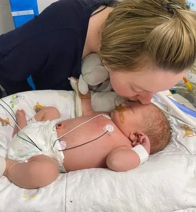 When Hudson was first placed on me he was grey, his oxygen levels were dropping and his heart rate was slowing. The nurse let me know he may slip away on his own but the machine would keep breathing for him. But incredibly when she came to check on us a little later he was pink, he was breathing a bit on his own over the ventilator and his heart rate had picked up again. All he needed was me. All I needed was him. We healed each other.