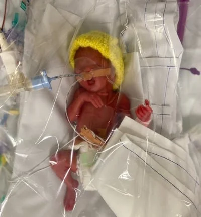 But it crumbled hard and fast in just 3 days due to painless preterm labor at 23 weeks. I was fully dilated with only Braxton Hicks type random tightenings and was only prompted to go to the hospital because of the smallest bit of spotting. The first twin, Louie, had a heart rate drop during birth suite CTG tracing which lead to emergency c section for both twins. My husband and I had already decided that we opted for NICU care but understood being at the very start of viability at 23 weeks, they only had a 50/50 chance of survival and often would have developmental problems and physical limitations, but we wanted to give them a shot because they were both so healthy.
